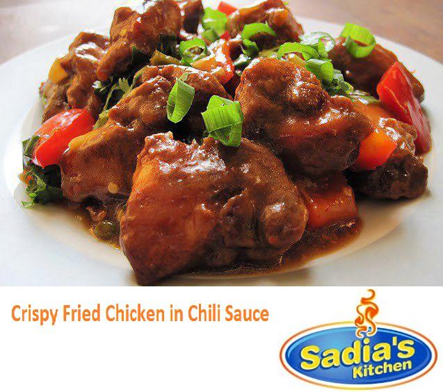 6-Add salt, pepper,Soya sauce, vinegar, chili sauce, tomato sauce and fried chicken.